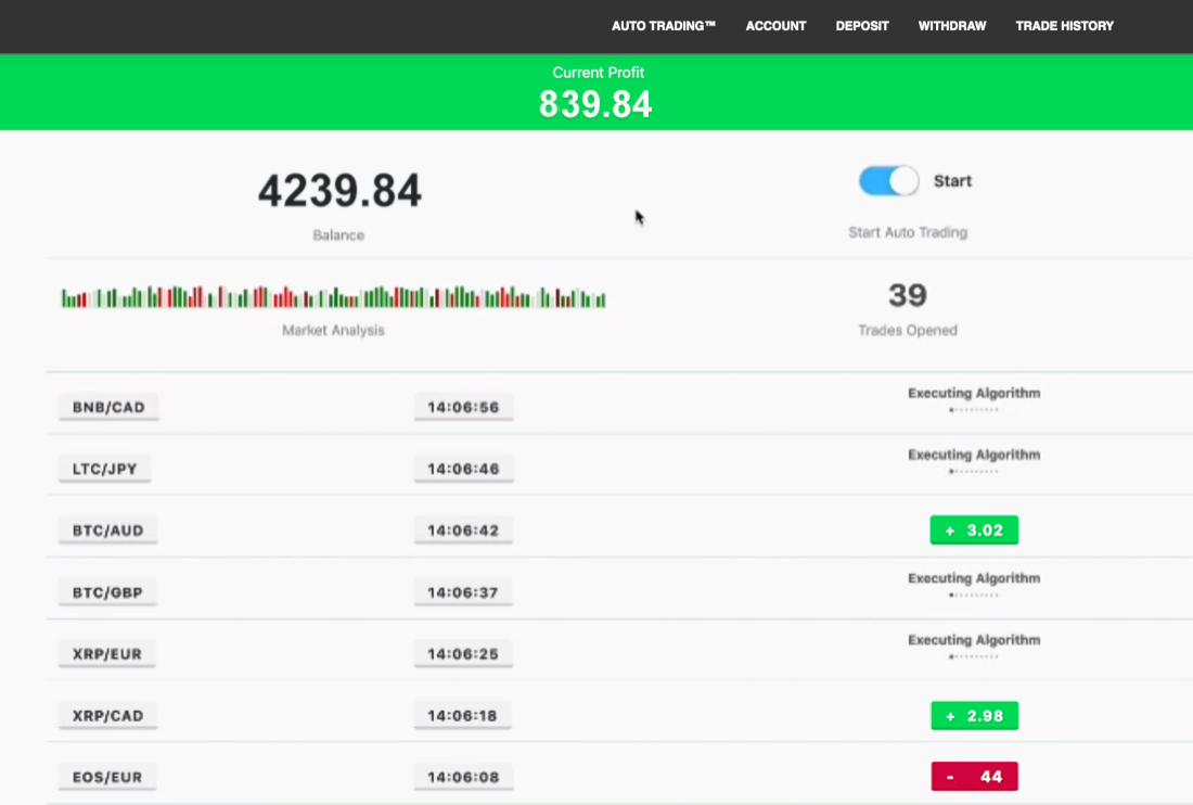 I chose to pay with my credit card. The payment was processed instantly, and my account was activated immediately. I was then able to turn on the automated trading mode and start exploring the platform’s features.
